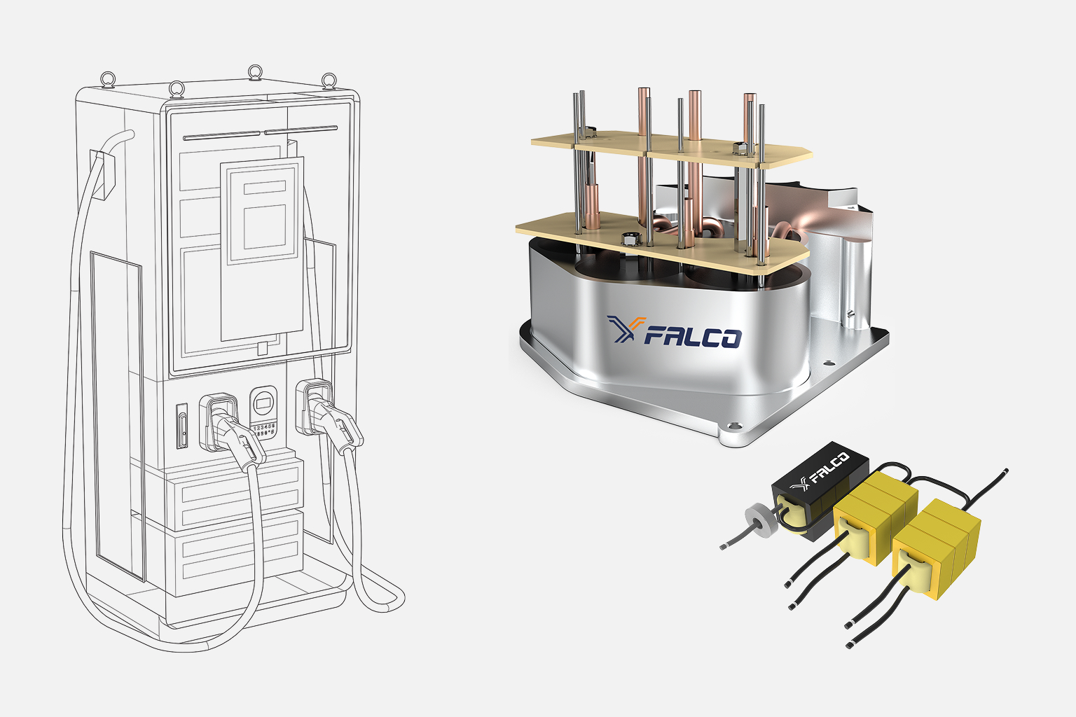 Falco designs and produces General purpose CTs, High Accuracy CTs, DC Immune CTs, High Frequency Transformers, Common and Differential Mode Chokes and PFC Inductors for Level 1, Level 2, Level 3 EV Chargers.