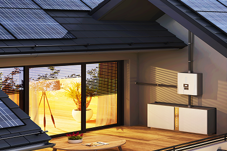 The string inverter is connected to multiple strings of solar panels under similar sunlight and shading conditions.